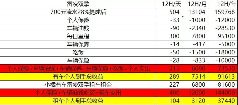 应该已经非常详细了。以上是快车12小时每天每月每年收入(每月是26天因为有4天限号),大致比较清晰。